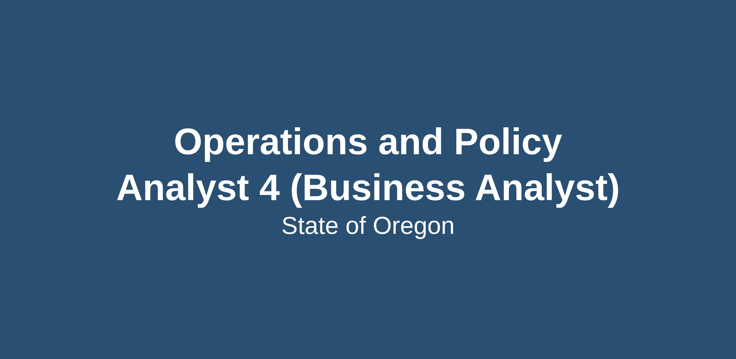 Operations and Policy Analyst 4 (Business Analyst)Job Description:
