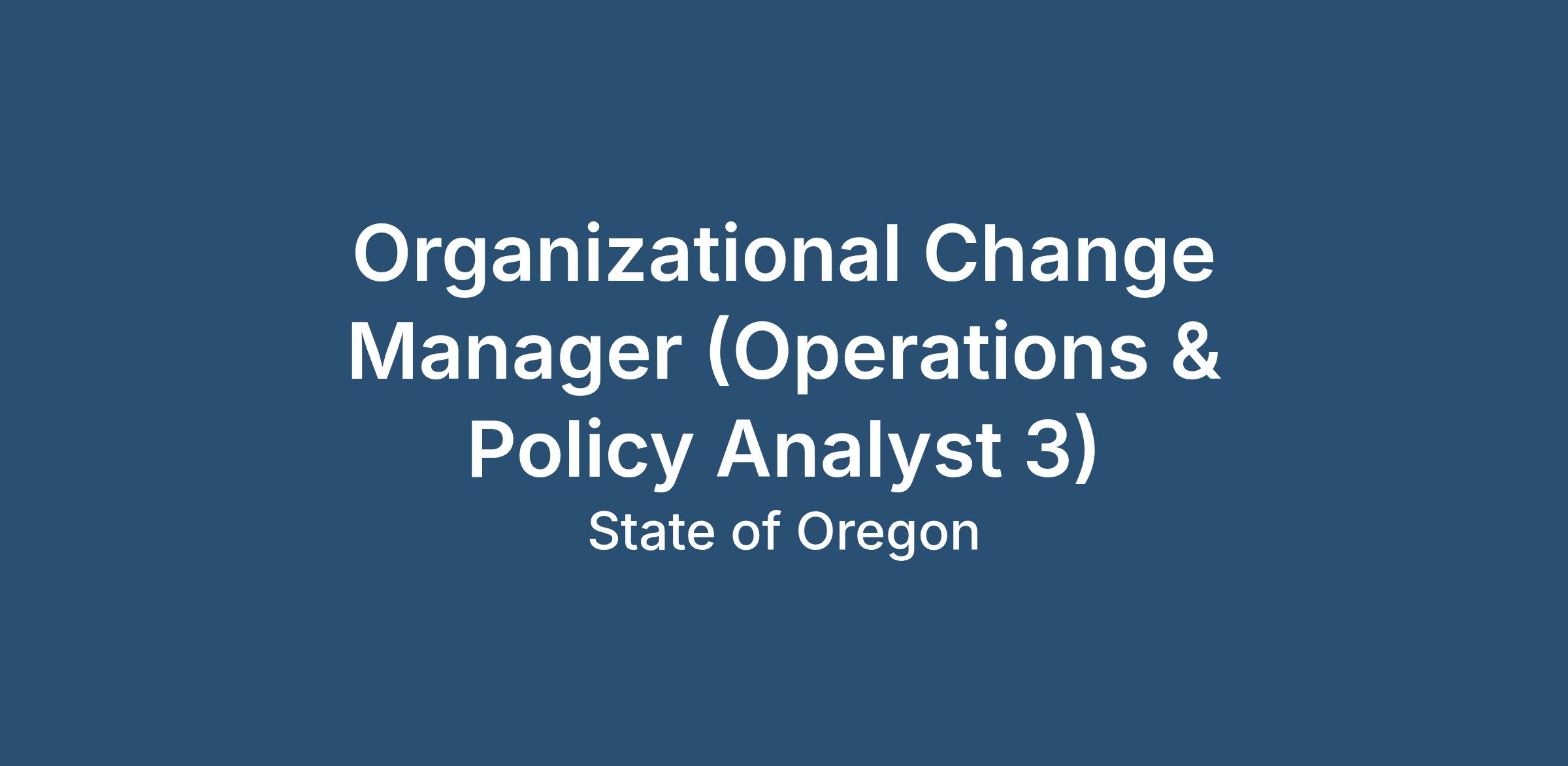 Organizational Change Manager (Operations & Policy Analyst 3)Job Description: