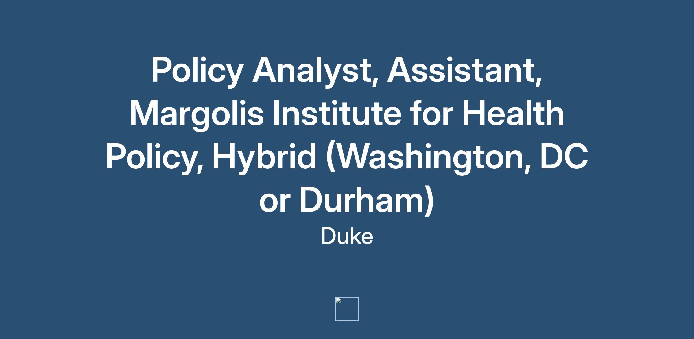 Policy Analyst, Assistant – Hybrid (Washington, DC or Durham, NC)