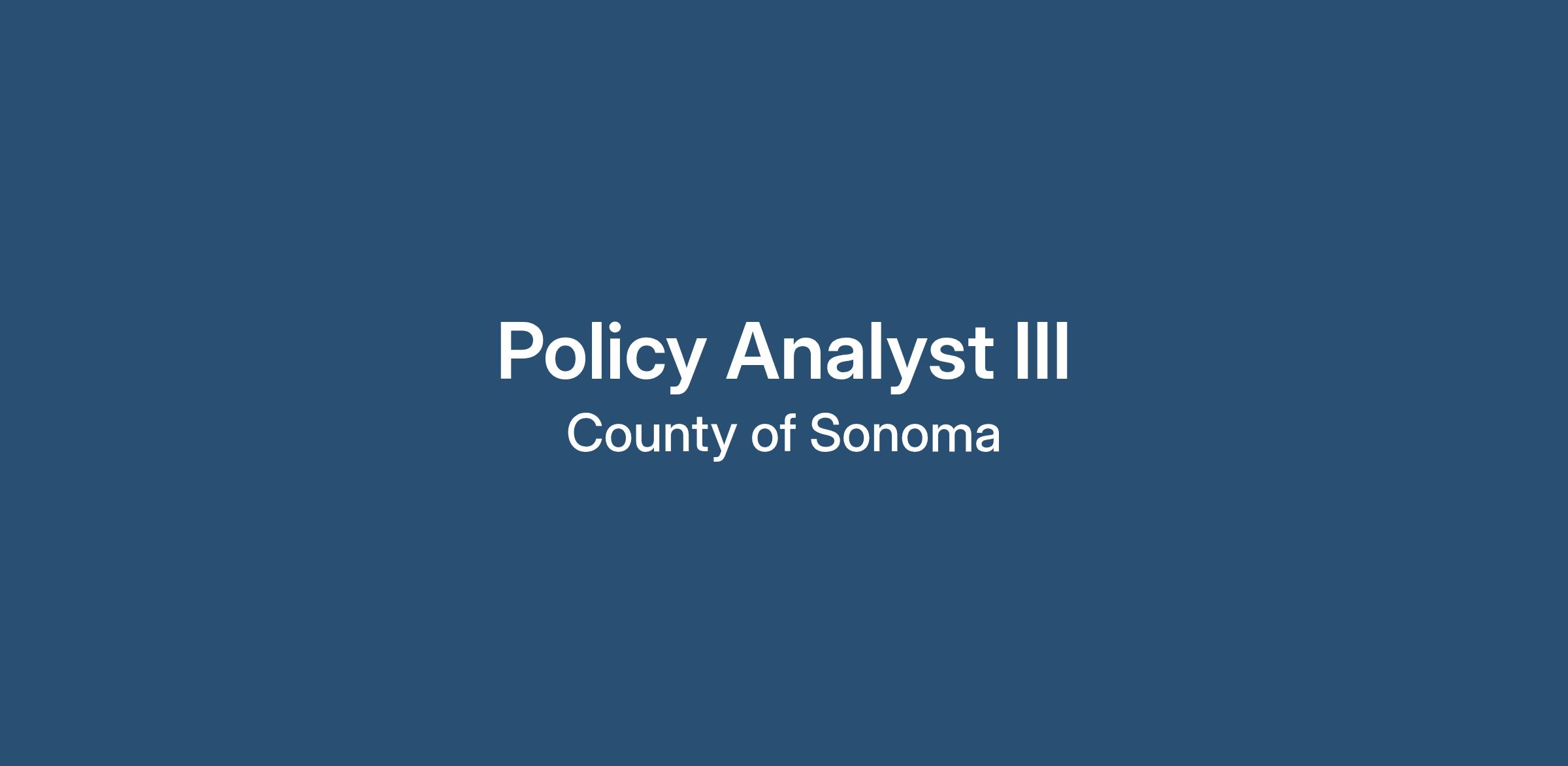 The Sonoma County Executive's Office is seeking a talented, analytical individual to join their team as a Policy Analyst.