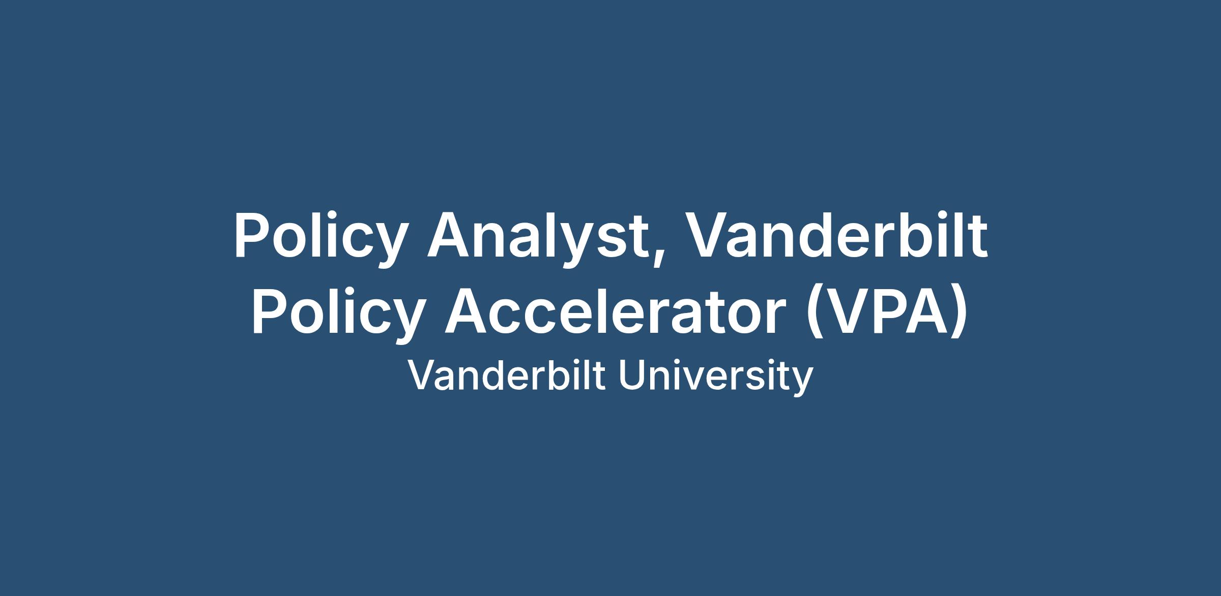 The Policy Analyst is part of the Vanderbilt Policy Accelerator (VPA) in the Law School at Vanderbilt University and is responsible for performing research, policy analysis, and scholarly writing. The position is akin to a staff position at a think tank and reports to the Executive Director of VPA. To be considered for this position, candidates must submit a cover letter explaining your background and interest, CV, and list of references.