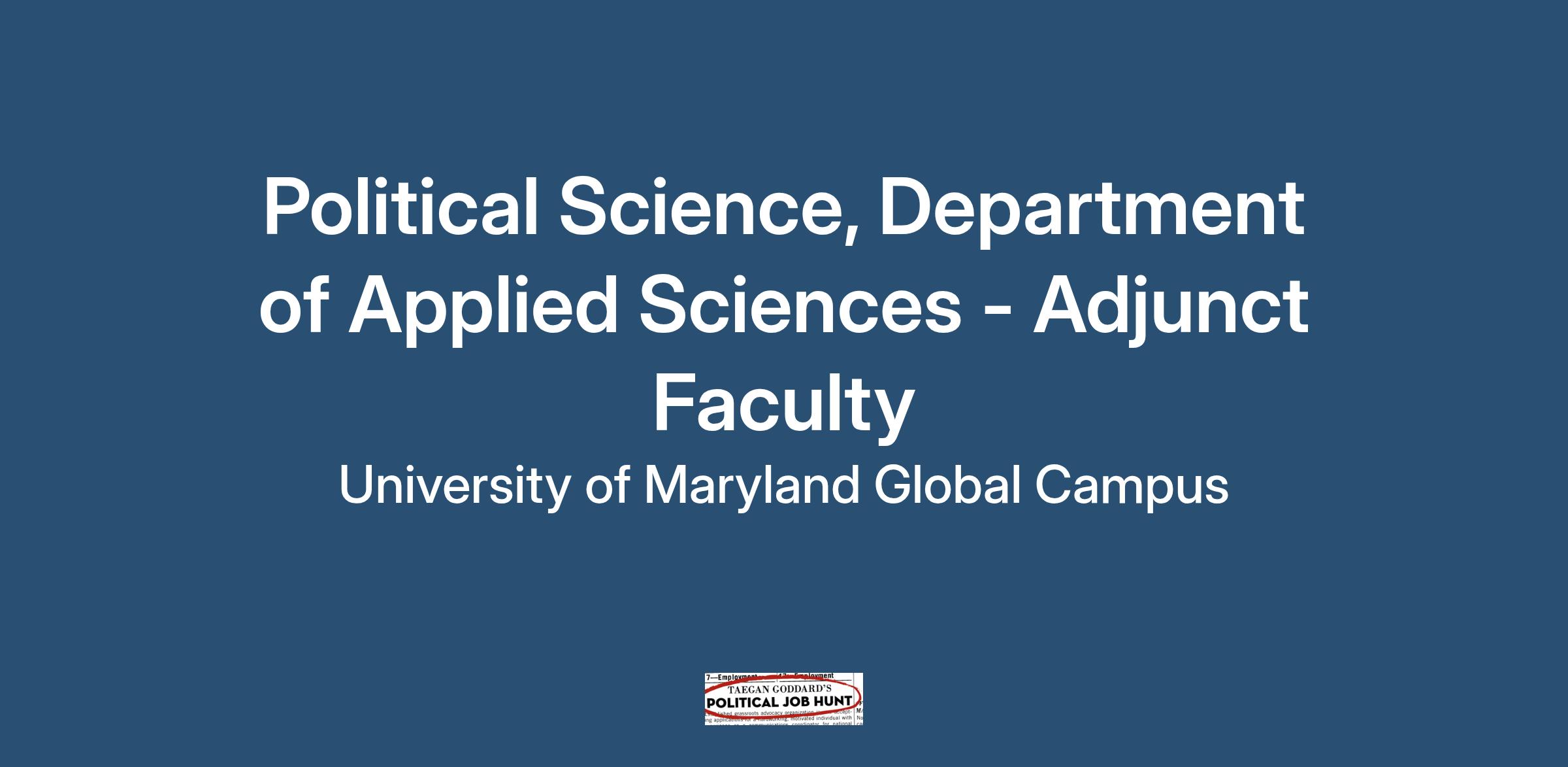 University of Maryland Global Campus (UMGC) seeks adjunct faculty to teach on-site at Aberdeen, MD, in the Political Science program.