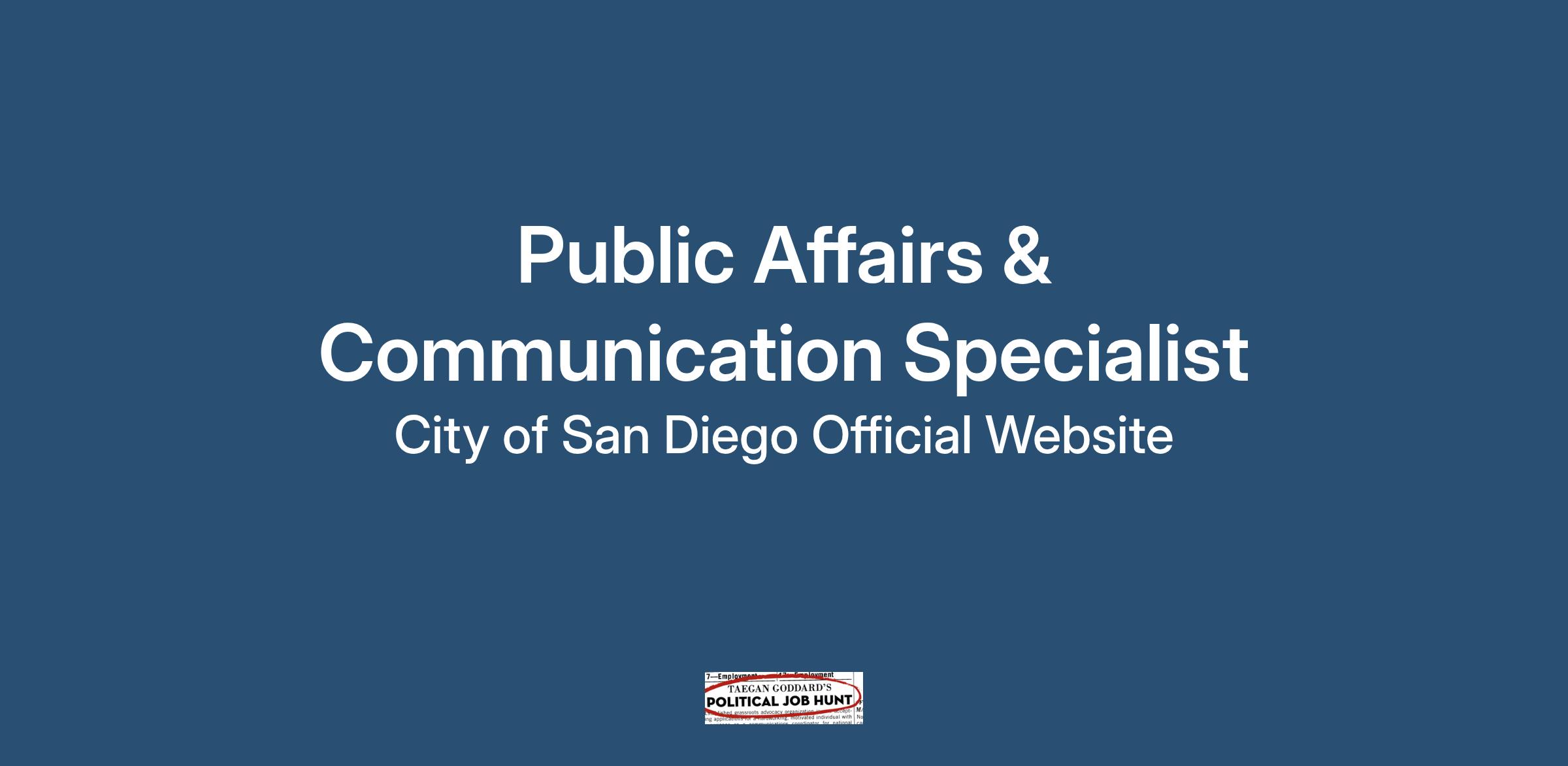 Council President Joe LaCava, San Diego City Council District 1, seeks a qualified Public Affairs and Communication Specialist to communicate and elevate the Council President’s vision and legislative priorities. The successful candidate will plan, develop, and execute accurate and professional public information, outreach, and social media content, including websites, emails, videos, speeches, Op-eds, and newsletters, with an eye for accuracy, optics, timeliness, and tone.