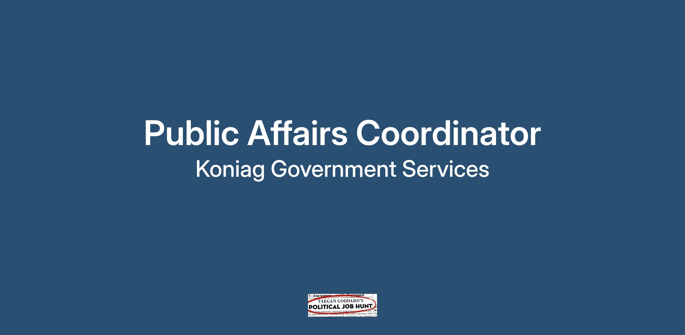 Koniag Data Solutions, a Koniag Government Services company, is seeking a Public Affairs Coordinator to support KDS and our government customer in Picatinny Arsenal, NJ.
