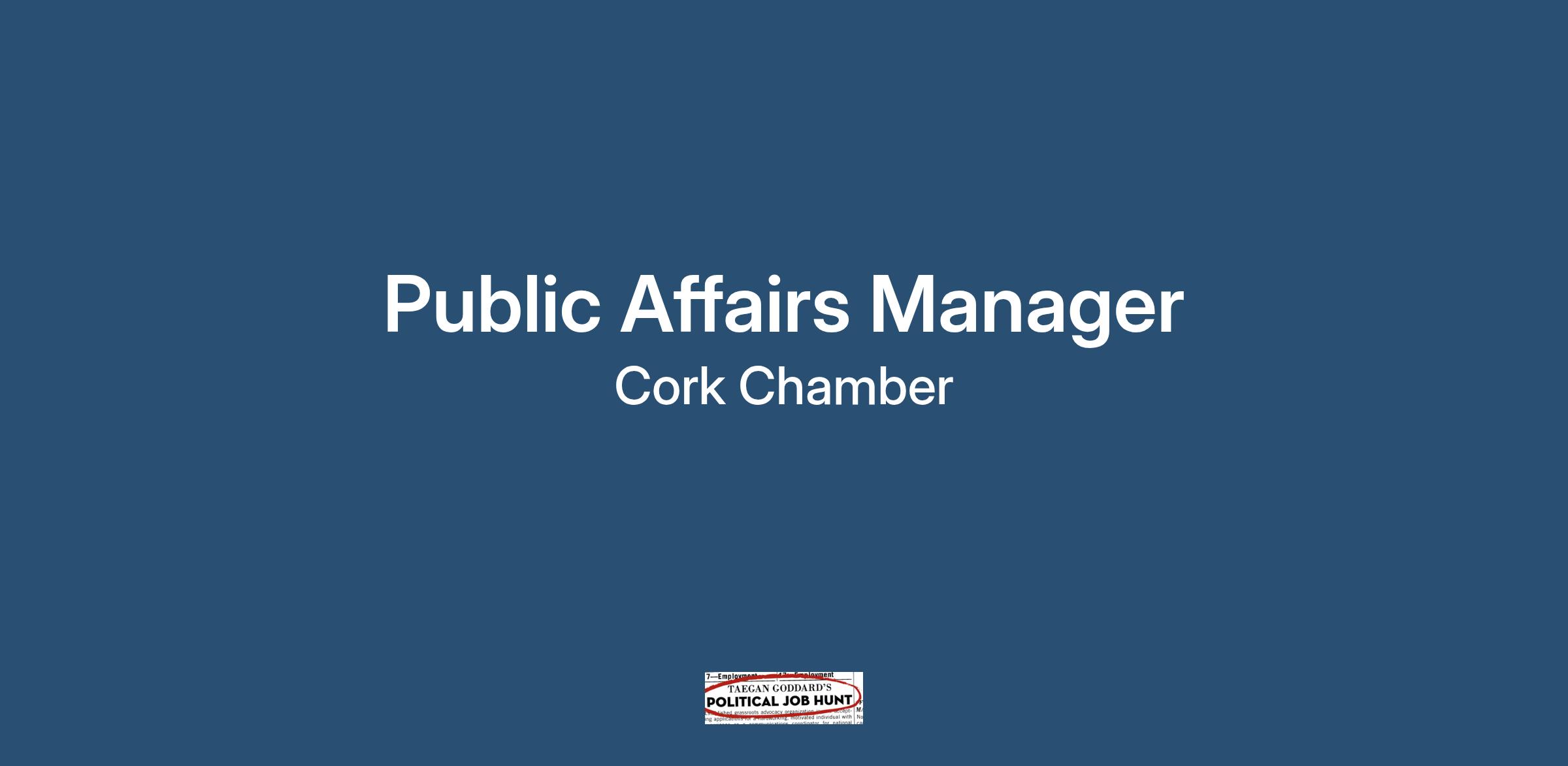 The ideal candidate should be degree qualified in a relevant discipline such as government/public affairs/ business etc and have at least 5 years’ experience in government, communication, sustainability, and/or advocacy. The successful candidate will play an active role in both driving and shaping the Chamber agenda. They should have a proven track record on advocacy and sustainability and contribute positively and with energy to Ireland’s most active regional business advocacy team.