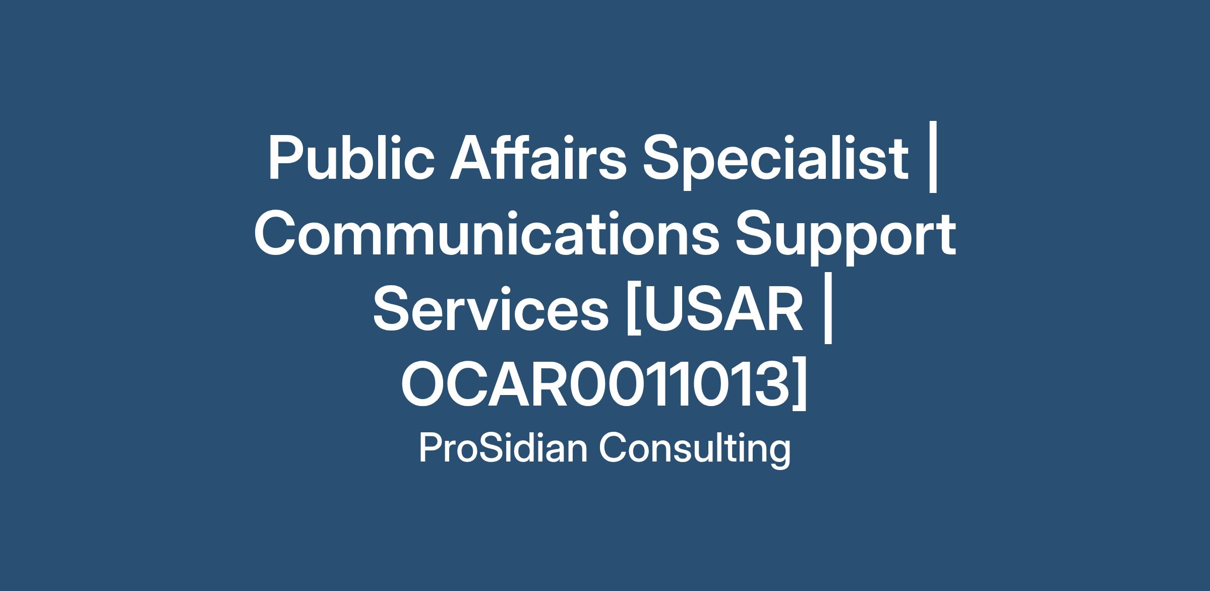 We seek Public Affairs Specialist | Communications Support Services [USAR | OCAR0011013] candidates with relevant Aerospace And Defense Sector Experience (functional and technical area expertise also ideal) to support professional services engagement for Aerospace And Defense Sector Clients such as USAR | OCAR. This as a Full-Time ProSidian W-2 Communications Support Services Functional Area / Swim Lane / Category Discipline - Army Reserve Communications Support Services Supply/Service Initiative and an employed position with commensurate benefits and competitive salary.