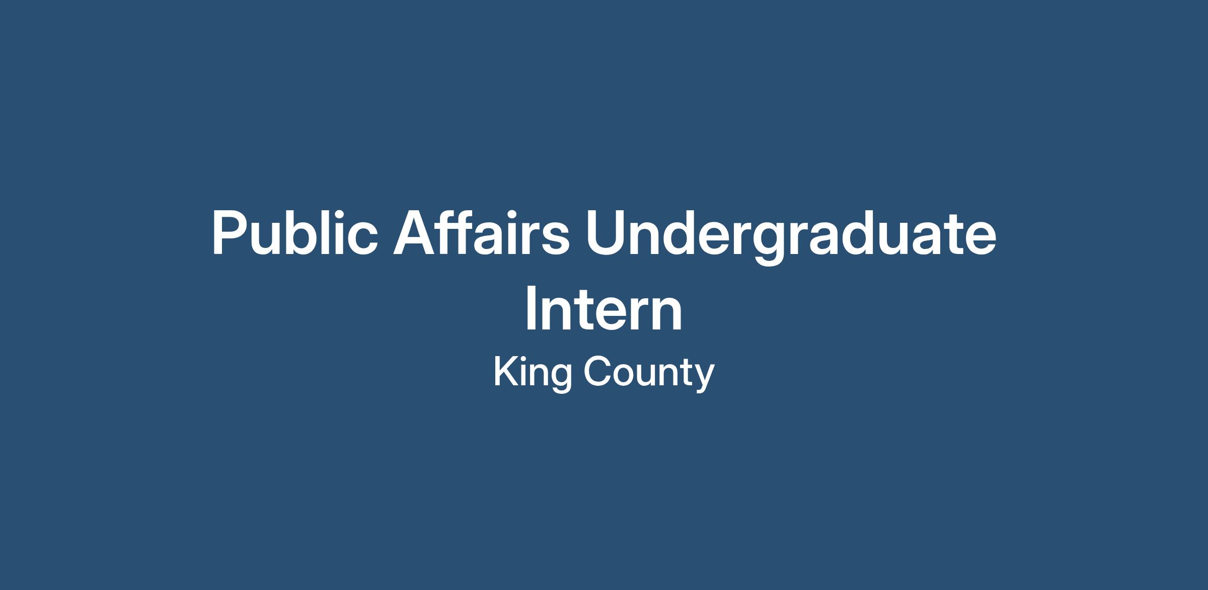 Are you an undergraduate student interested in public affairs, public relations or public policy? The King County Prosecuting Attorney's Office (PAO) team is looking for a highly motivated Public Affairs Intern to contribute to our communications and legislative affairs operations. You will report to the Director of Legislative & Public Affairs and the Director of Communications, assisting with projects ranging from legislative research to work on the communications landscape. This is a unique opportunity to gain professional experience in the public affairs arena in the 2nd largest law firm in Washington State while making significant impacts in your community!Who May Apply: Currently enrolled Bachelors/Associates level studies at an accredited university/college through Fall quarter of 2026. Proof of enrollment status is required upon hire. Interns must commit to working for at least for six months.
