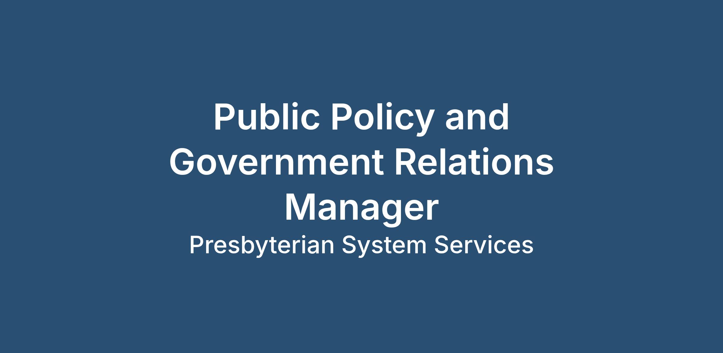 Build your Career. Make a Difference. Presbyterian is hiring a skilled a Public Policy & Government Relations Manager to coordinate and work closely with the Director of Public Policy and Government Relations in small team dynamic. Oversees the state legislative tracking process and attends state and local-level meetings in consultation with the Director. Type of Opportunity: Full time Job Exempt: Yes Job is based: Reverend Hugh Cooper Administrative Center Work Shift: Days (United States of America)Responsibilities: