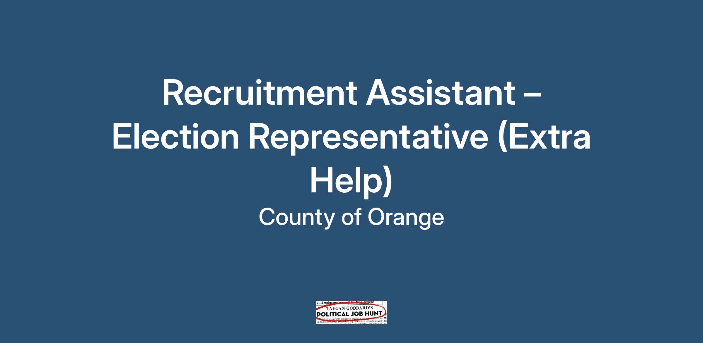 Orange County Registrar of Voters (ROV) will begin accepting applications for the Recruitment Assistant/ Election Representative (Extra Help) position on Friday, November 26, 2025, this recruitment will be posted for a minimum of five (5) business days and will remain open on a continuous basis until the needs of the Agency are met. Qualified applicants are encouraged to apply immediately. The first review of applications will be done on or about Monday, December 01, 2025. Please Note: Only online applications will be accepted. Applications will be screened in relation to the criteria described.