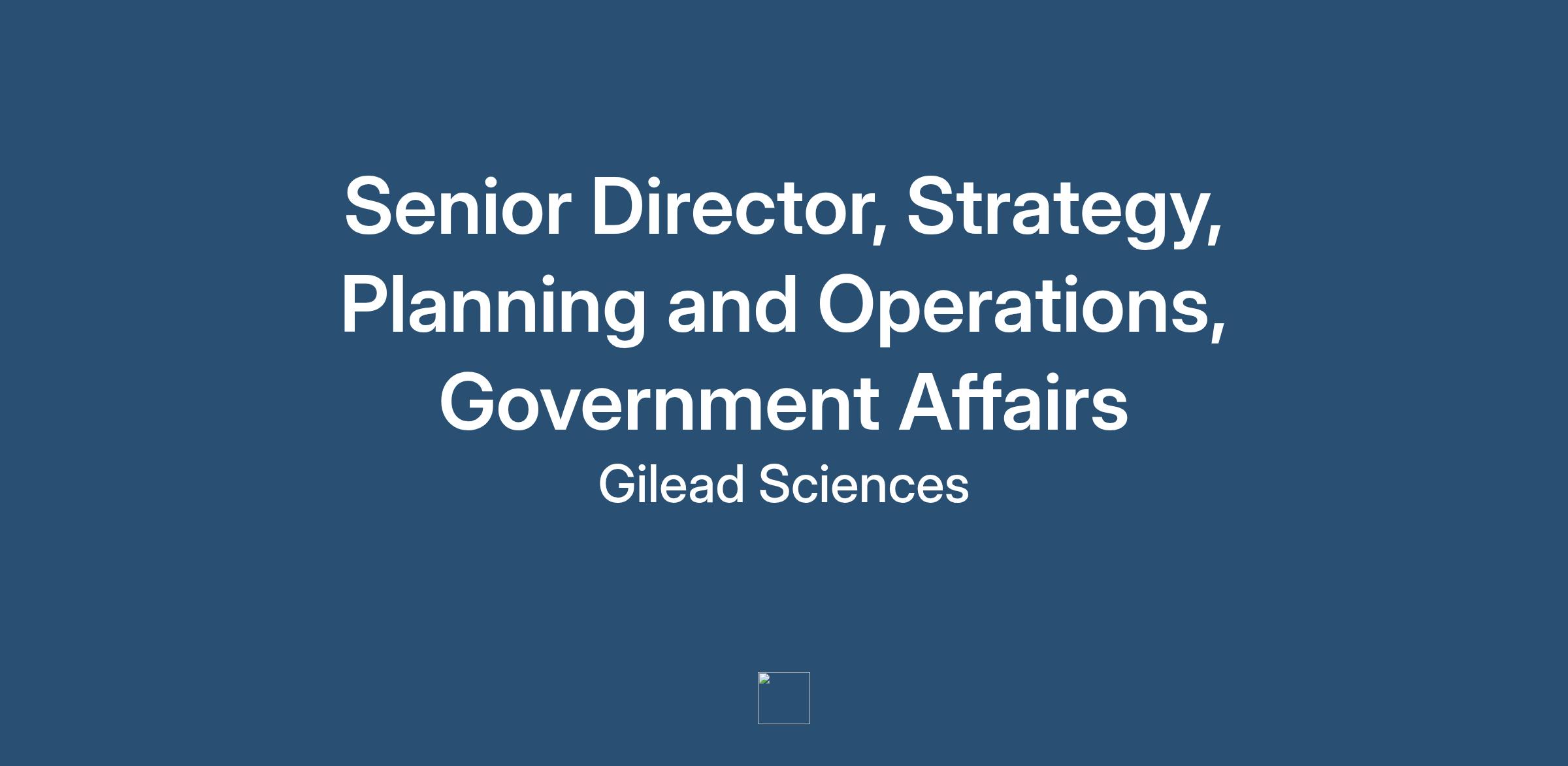 Gilead Sciences is hiring a business-focused executive to oversee global planning and operations for the Government Affairs (GA) group. The role supports strategy development, planning, budgeting and operations for all parts of Government Affairs, including the US and international government affairs and policy teams.