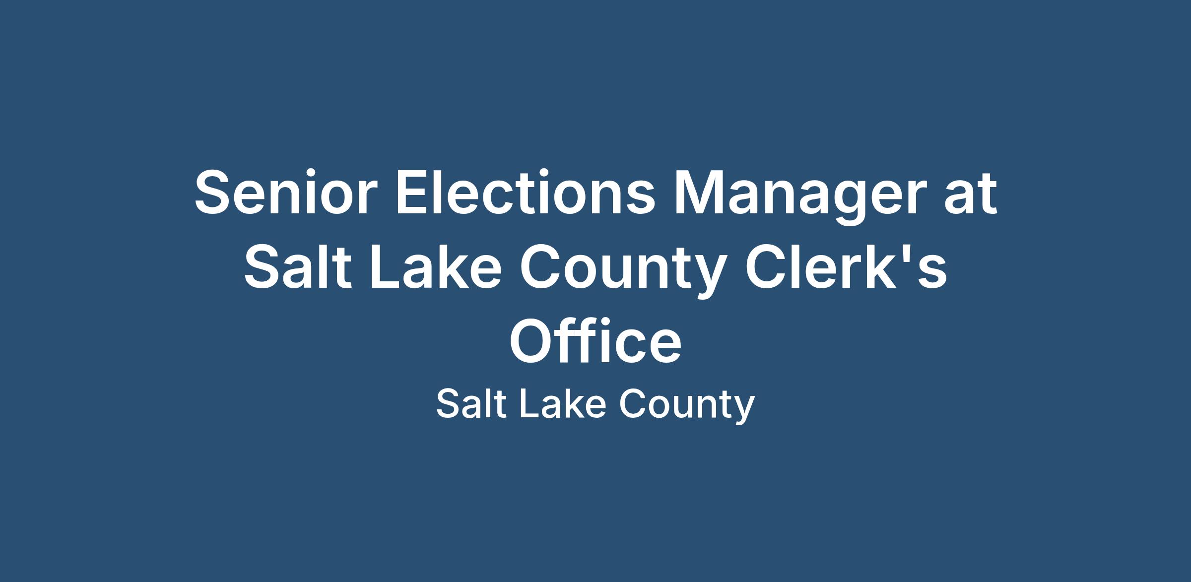 Senior Elections Manager at Salt Lake County Clerk's Office