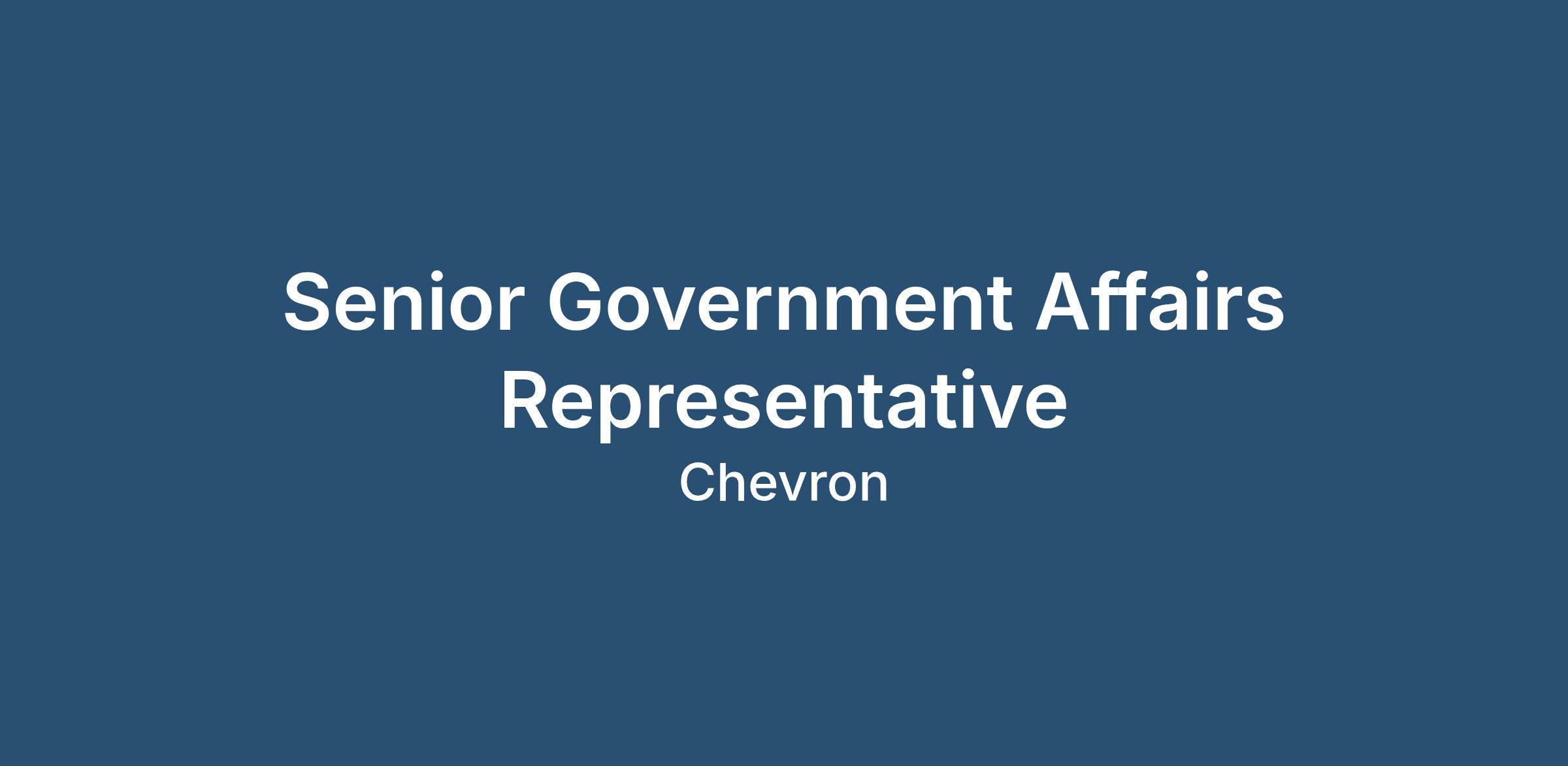 1Chevron is accepting online applications for the position Senior Government Affairs Representative through 2/5/2026 at 11:59 p.m. MST