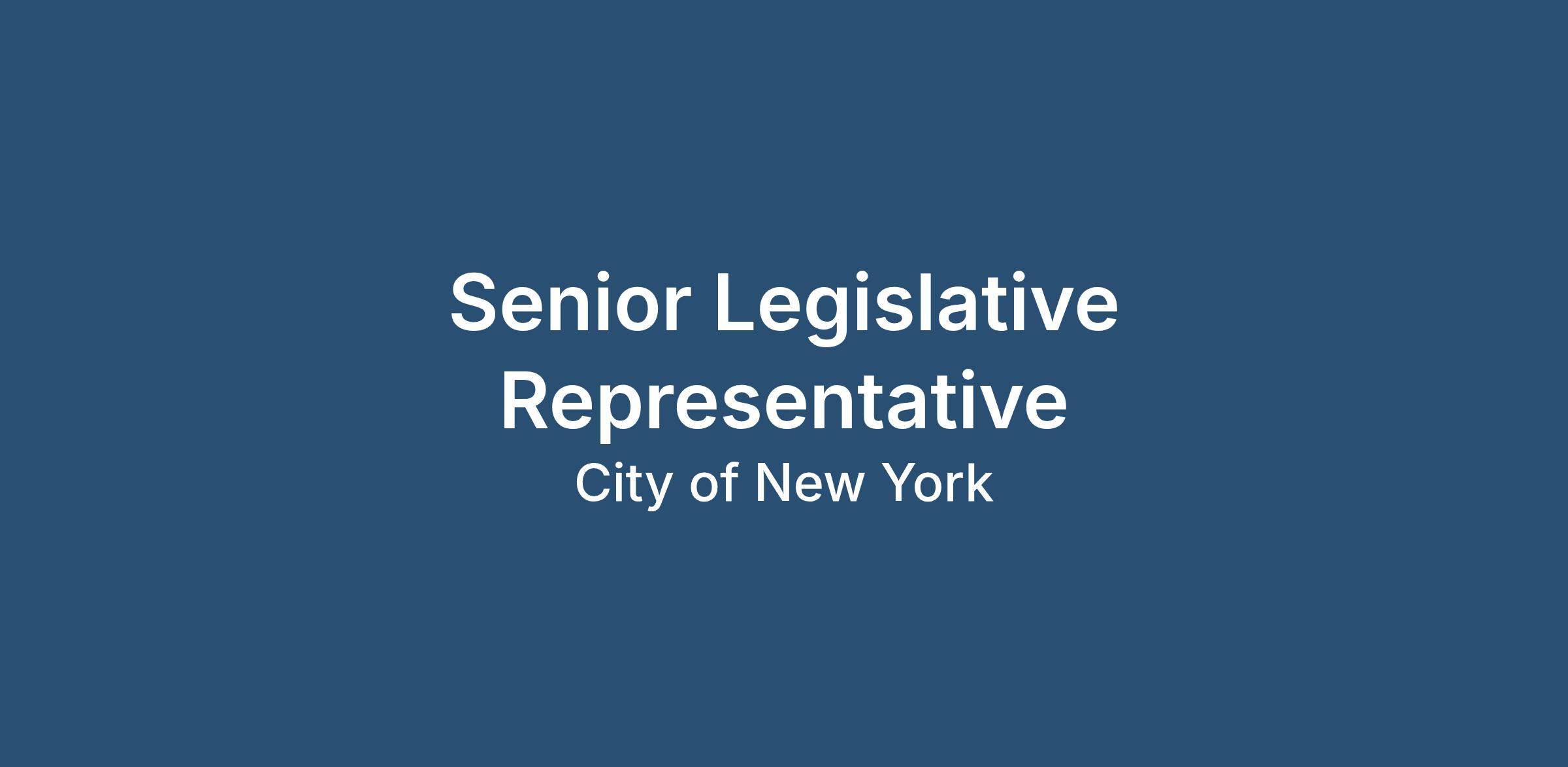 The Senior Legislative Representative will keep the Mayor and City agencies informed about pending or important issues affecting the City.
