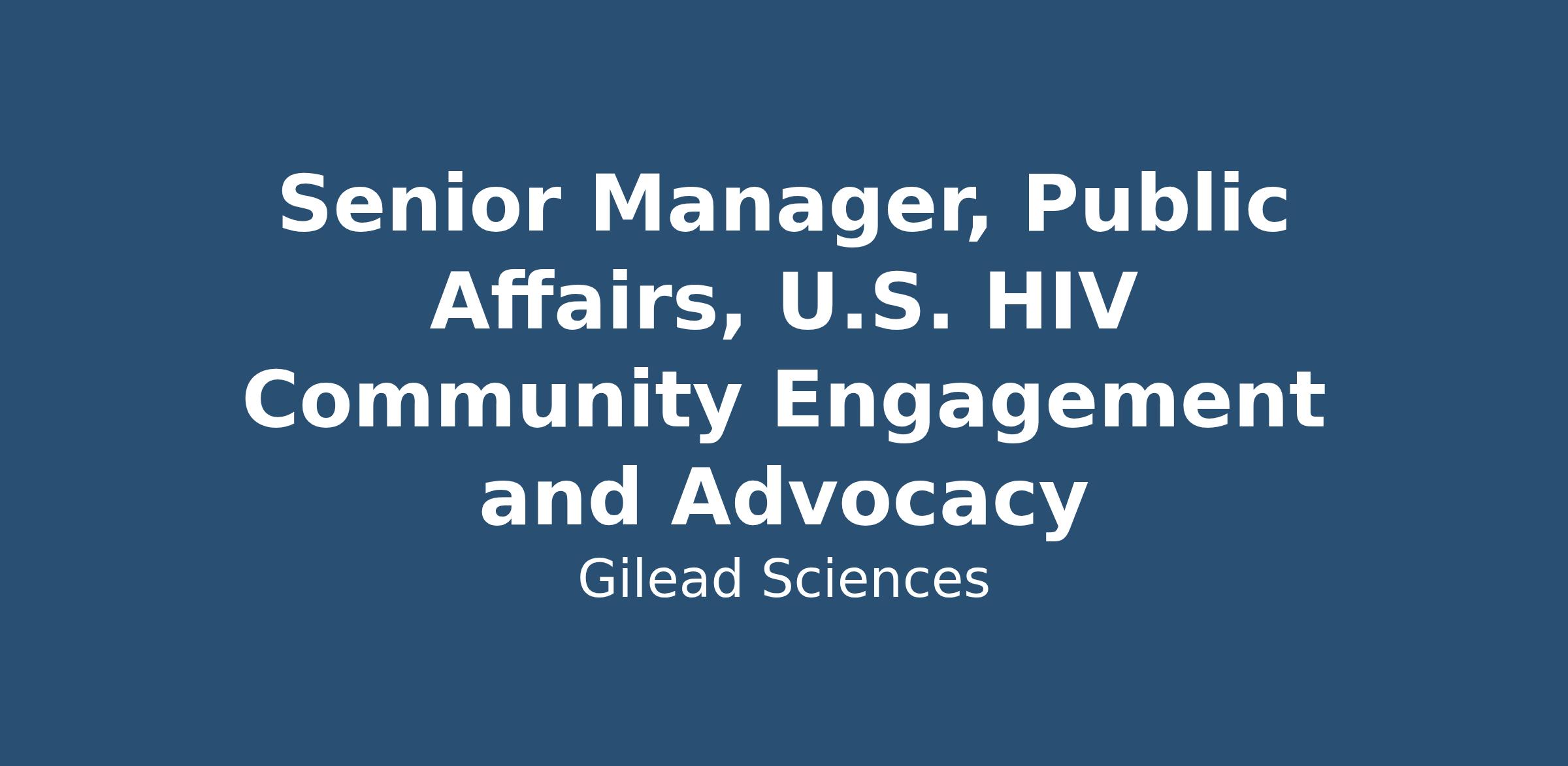 Senior Manager, Public Affairs, U.S. HIV Community Engagement and Advocacy