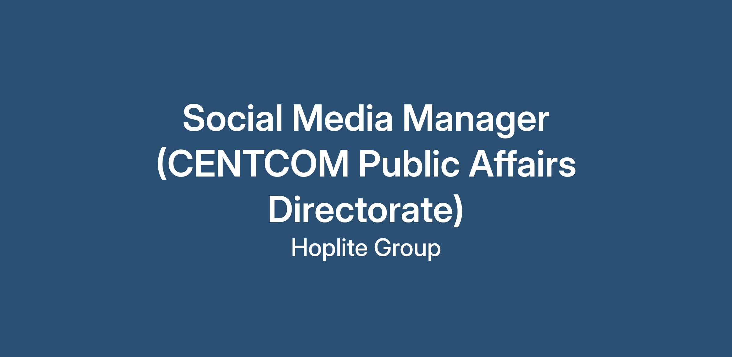 Bottom Line Up Front: Hoplite Group is seeking Social Media Manager to support contracted services for the U.S. Central Command (CENTCOM) Public Affairs Directorate (CCPA). The Social Media Manager will be responsible for overseeing the planning, creation, and management of CCPA's English and foreign language social media platforms.