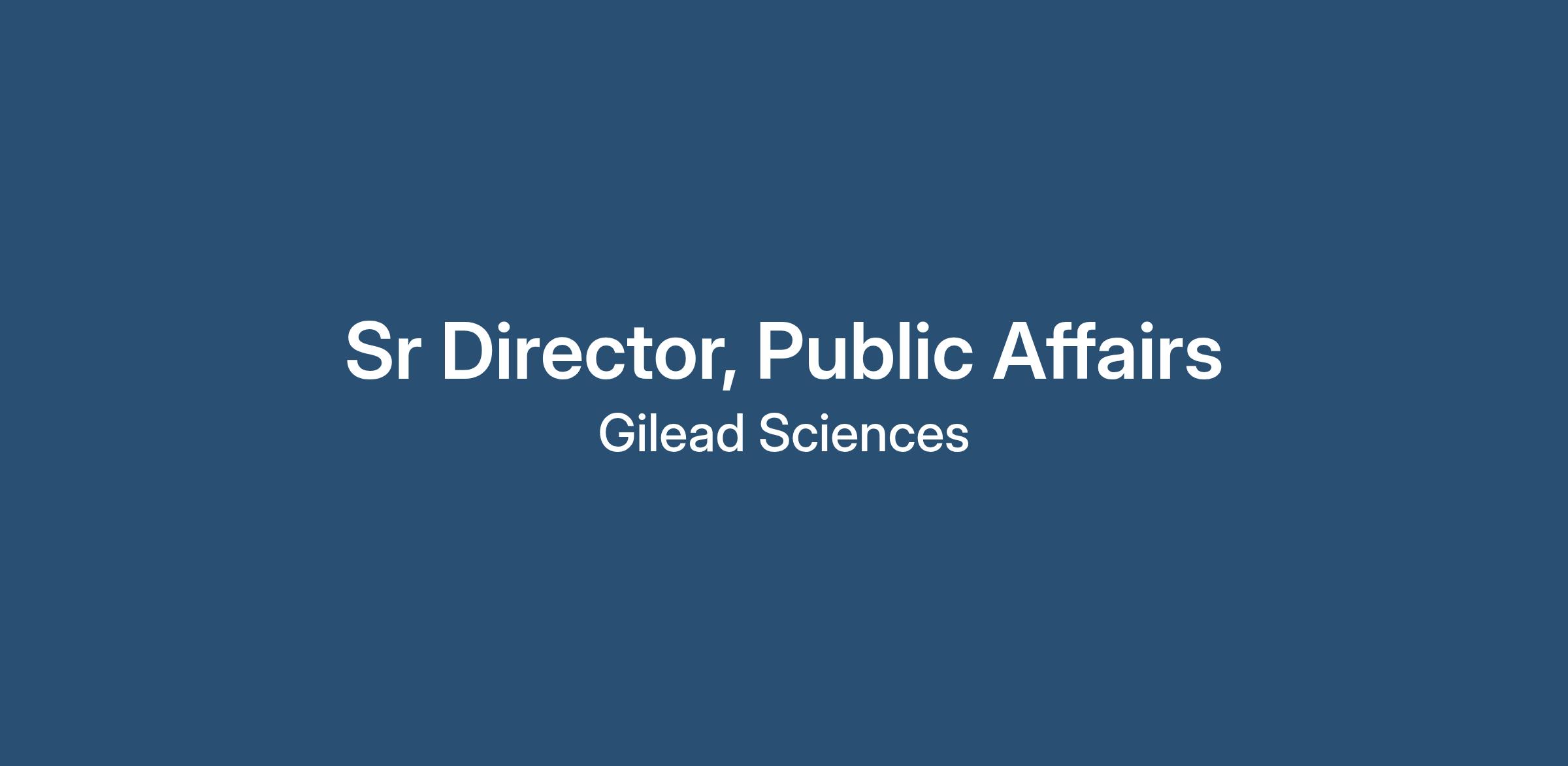 The Senior Director, Public Affairs (GPS Region) leads integrated advocacy and communications strategies that amplify GPS priorities, strengthen reputation, and expand access to innovation in low- and lower-middle-income countries. This leader builds strategic partnerships with patient organizations and advocacy groups, drives message discipline and storytelling across external and internal channels, and establishes the frameworks, insights, and governance needed to manage issues, align global teams, and deliver measurable impact. The position is based at Gilead’s headquarters in Foster City, CA, reporting to the Executive Director, Intercontinental Region and GPS.