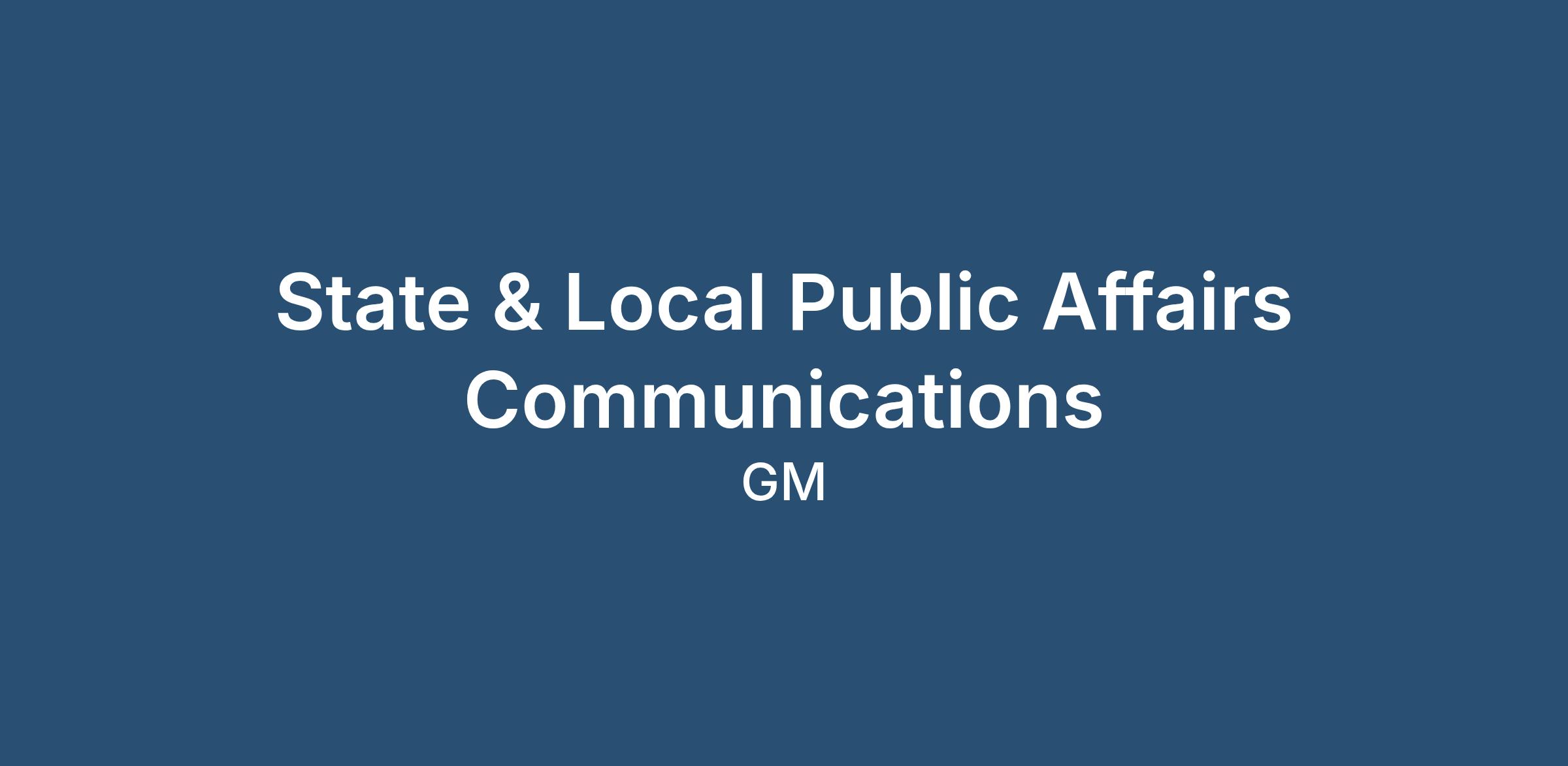 Lead state and local public affairs storytelling that strengthens GM’s reputation in key communities and helps manage policy and labor-related risk.