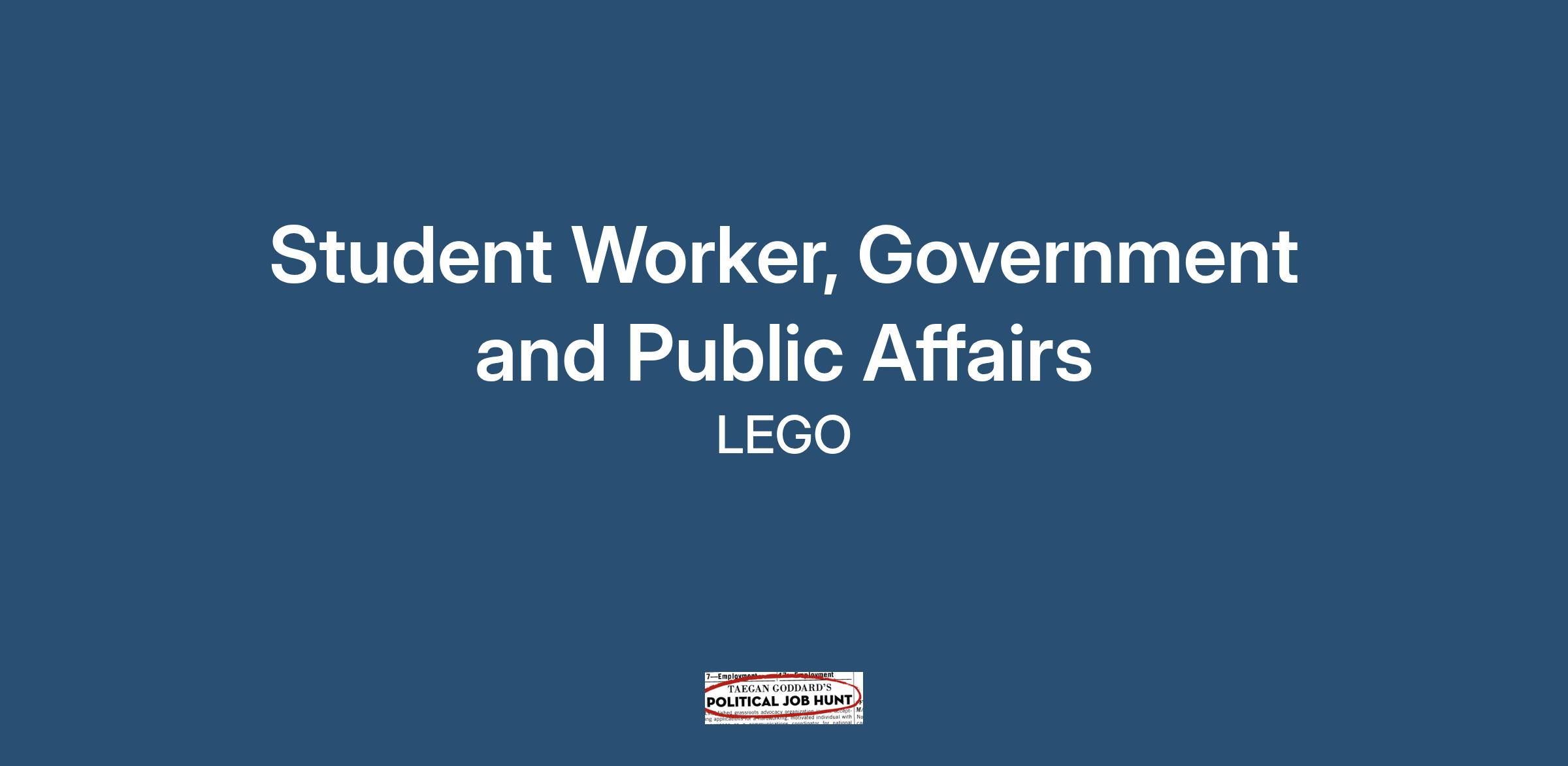 The LEGO Group Government and Public Affairs function is looking for an enthusiastic and dedicated individual to join our Policy & Global Engagement team as student worker. This is an outstanding opportunity to gain experience in corporate advocacy strategies whilst supporting our public affairs engagement and government relations activities globally.