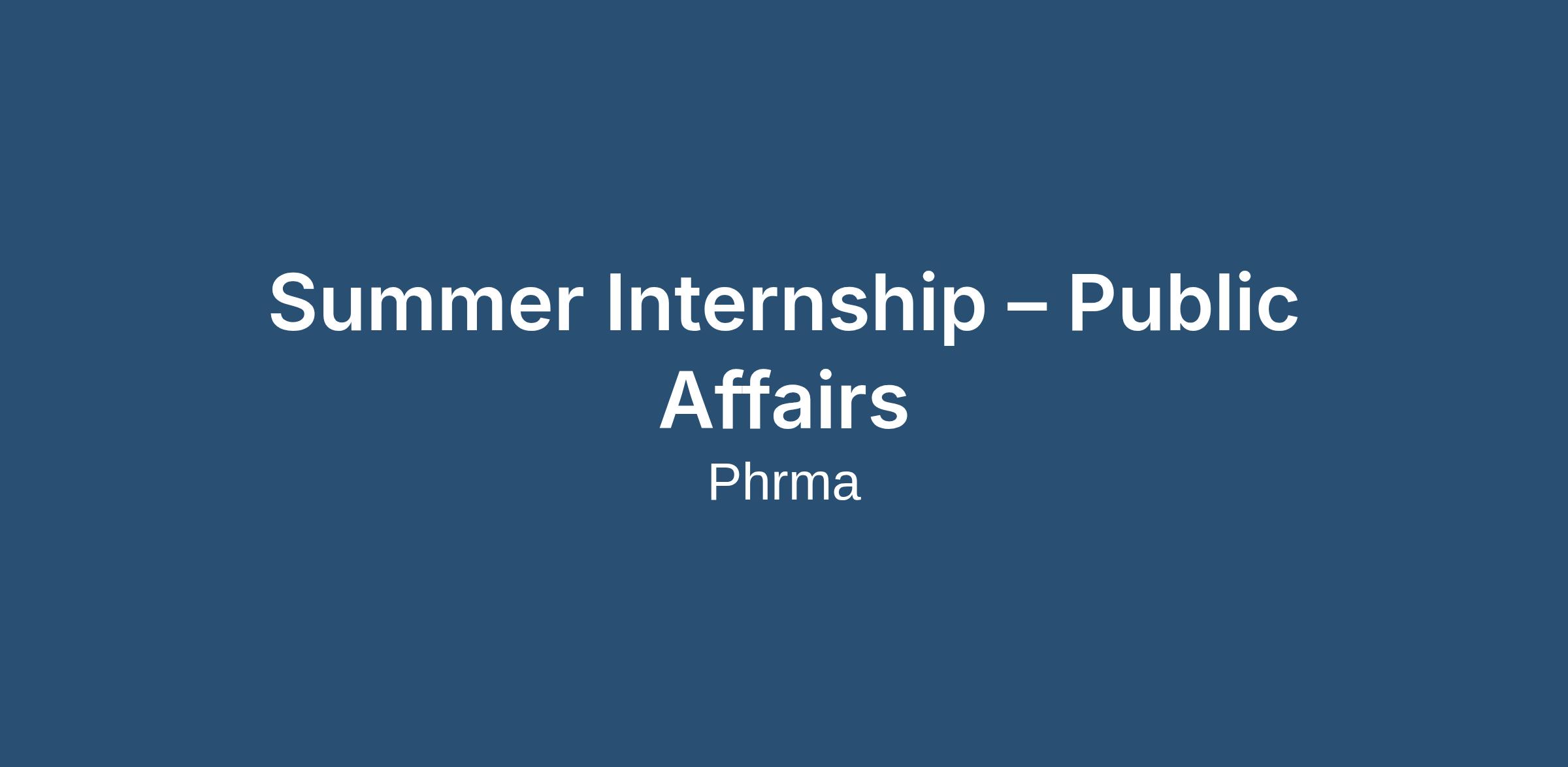 The Pharmaceutical Research and Manufacturers of America (PhRMA) is seeking an internship candidate to support Public Affairs Department initiatives, activities and priorities at our Washington, D.C. Headquarters office. The intern will broadly assist members of the Public Affairs Department and work with multiple teams.