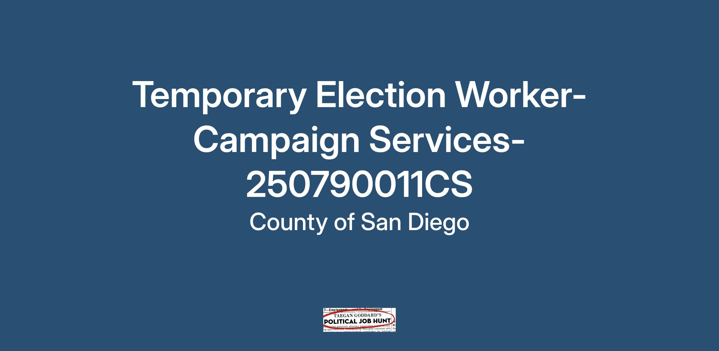 Additional Requirements/Information: While preparing for an election, there is extensive overtime required, often with little or no advanced warning. Vacations and time off during an election cycle are not allowed. This position will begin in late January 2026 and end in June 2026. Regular working hours will be 8:00 a.m.-5:00 p.m.