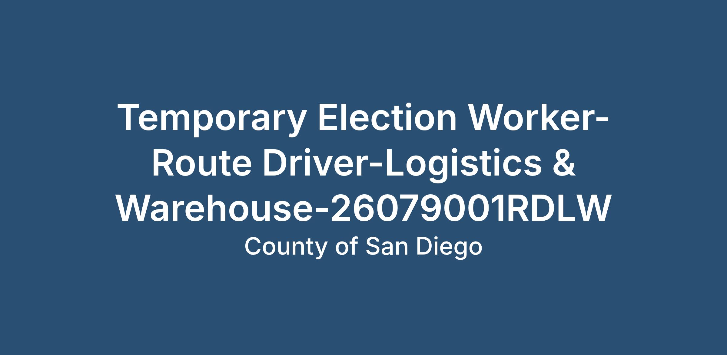 Temporary Election Worker-Route Driver-Logistics & Warehouse-26079001RDLW