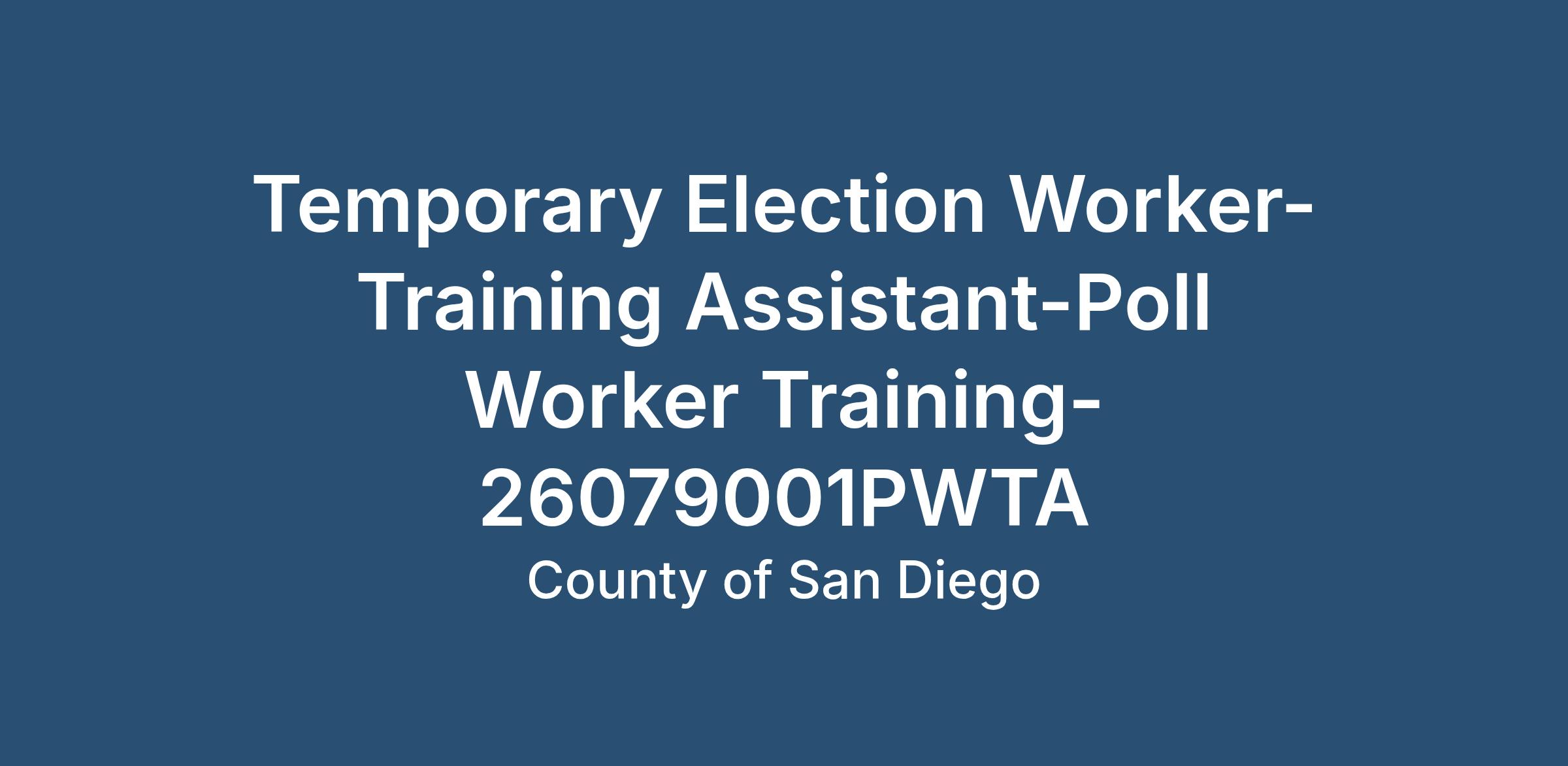 The County of San Diego Registrar of Voters is seeking qualified individuals to fill temporary positions in the Poll Worker Training section for the June 2, 2026, Primary Election.