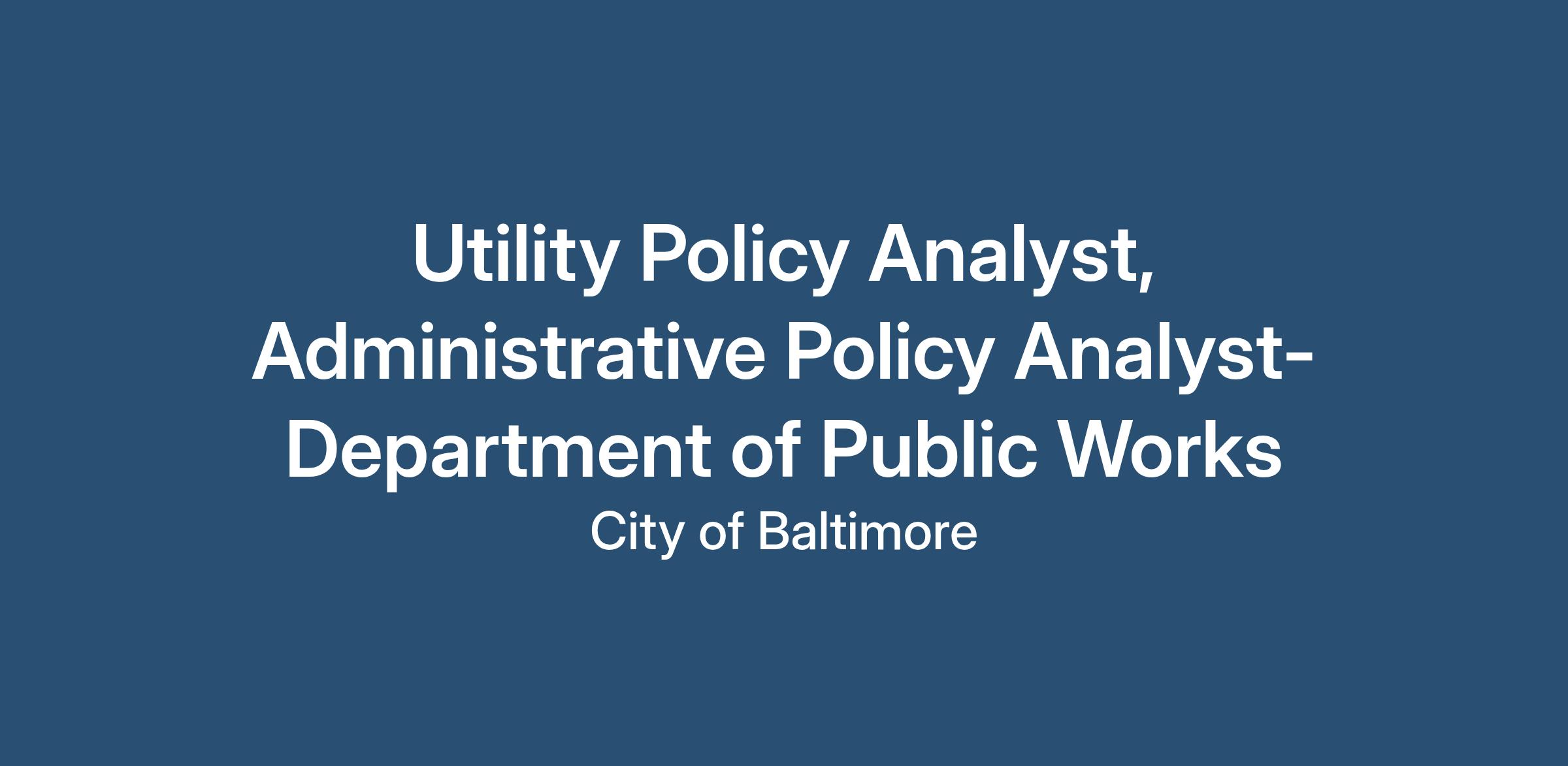An Administrative Policy Analyst investigates, studies and recommends City-wide administrative policies and procedures and develops and publishes the Baltimore City Administrative Manual. Work of this class involves no supervisory duties or responsibilities.