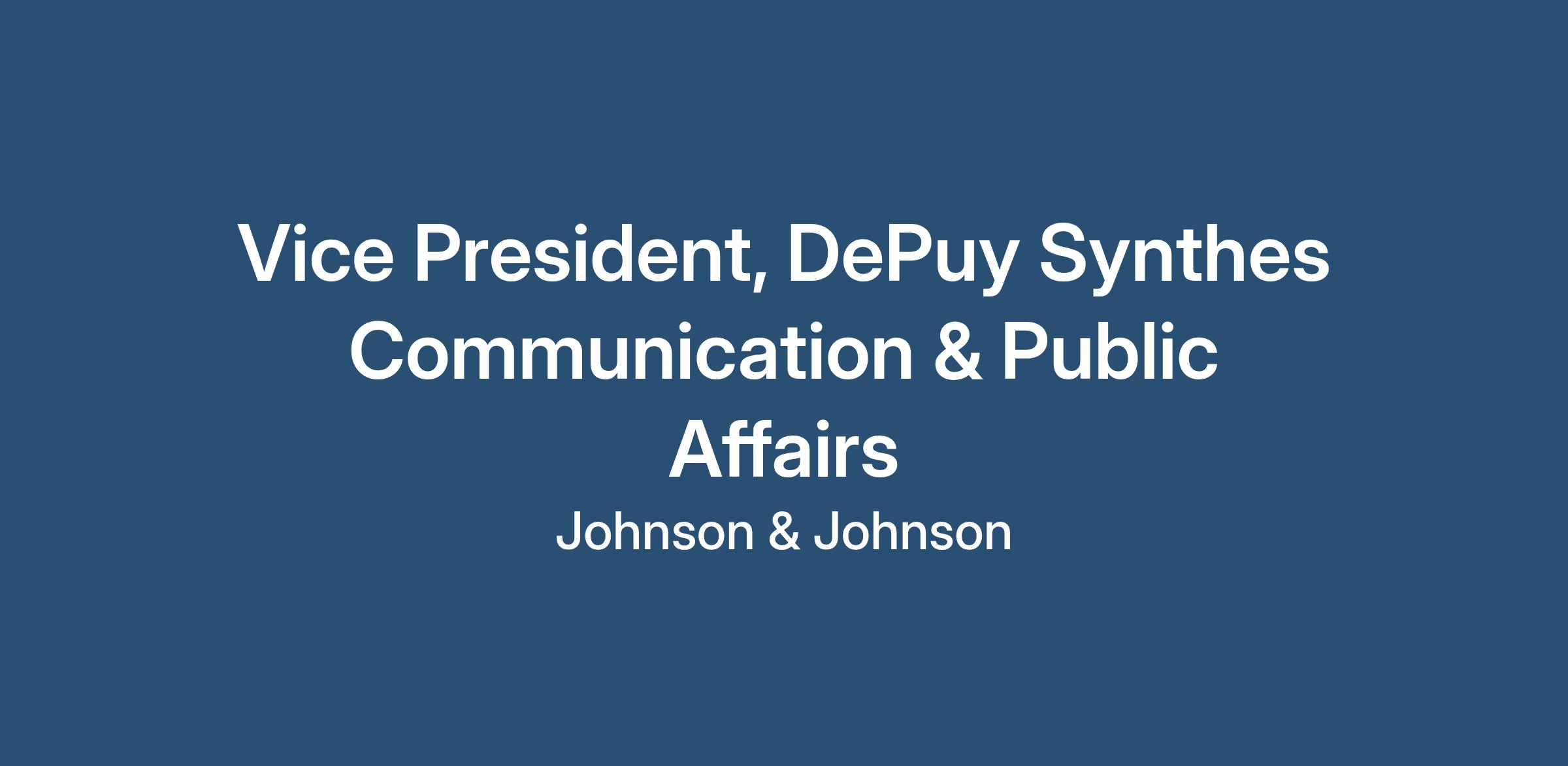 Johnson & Johnson is seeking a Vice President, DePuy Synthes Communication & Public Affairs. The position is based in Raynham, MA.