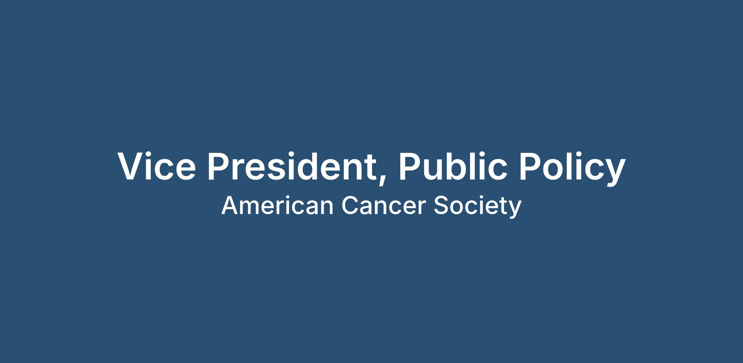 A senior level position directing public policy strategy and leading the American Cancer Society Cancer Action Network (ACS CAN) public policy team. The Vice President position requires a high level of policy expertise, external engagement, strategic leadership and management capabilities to achieve success in a complex and dynamic organizational environment.