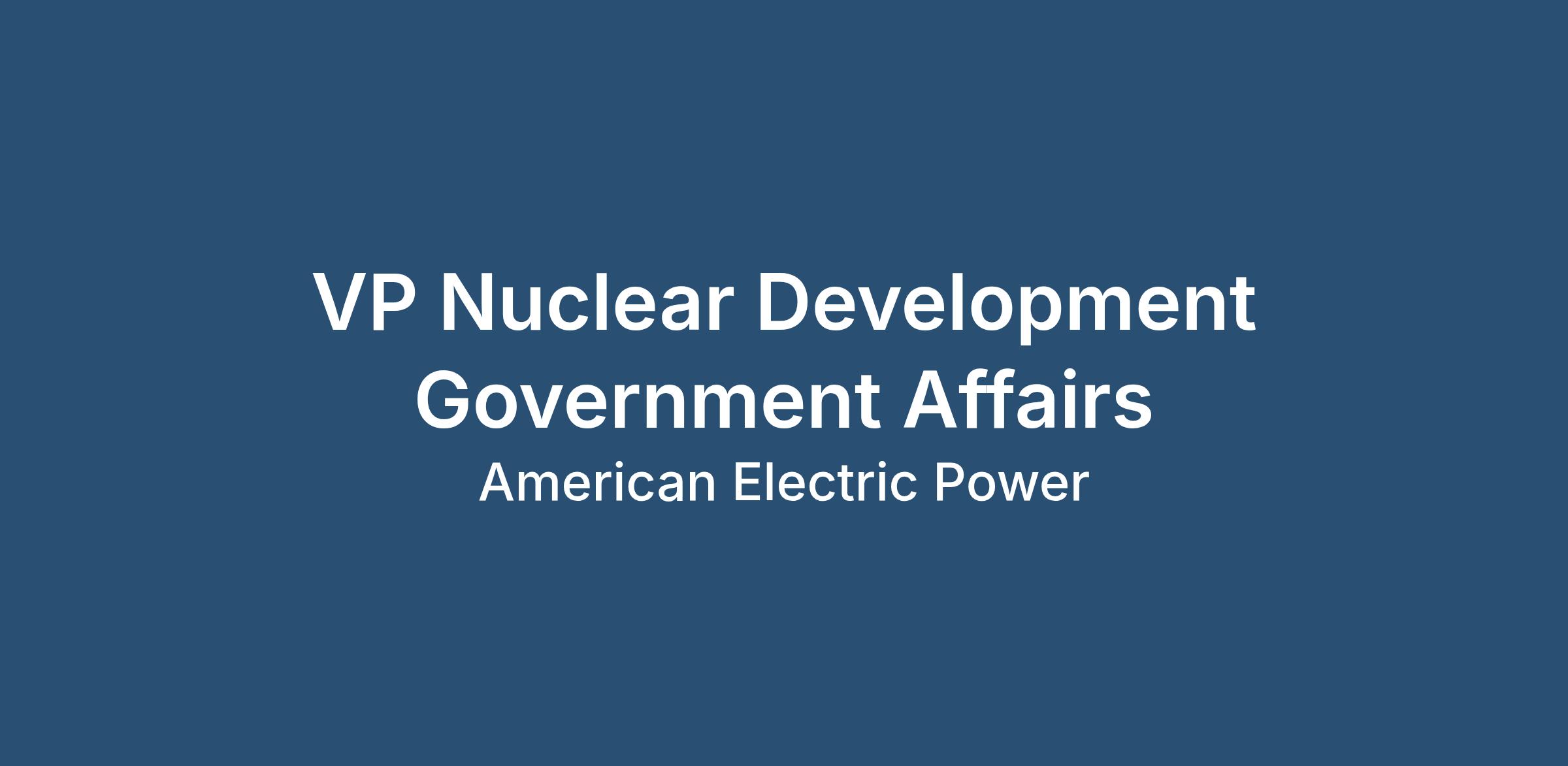 The Vice President Nuclear Development Government Affairs is a senior leadership role within AEP’s Nuclear Development organization, which is responsible for shaping and advancing the company’s legislative and regulatory strategy for new nuclear generation long term growth. This role provides the strategic legislative and regulatory vision, leadership, and execution needed to support the development and deployment of new nuclear generation, including next generation nuclear technologies, and ensures alignment across AEP’s regulated jurisdictions.Job Description